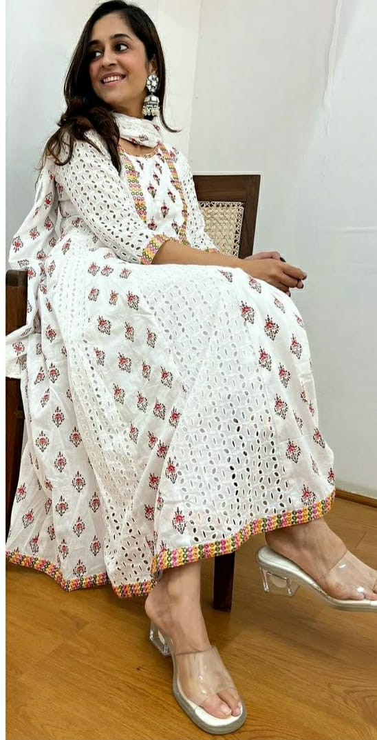 Anarkali chicken shifli work Hand Block printed cotton fabric specailly ethnic designed for you
